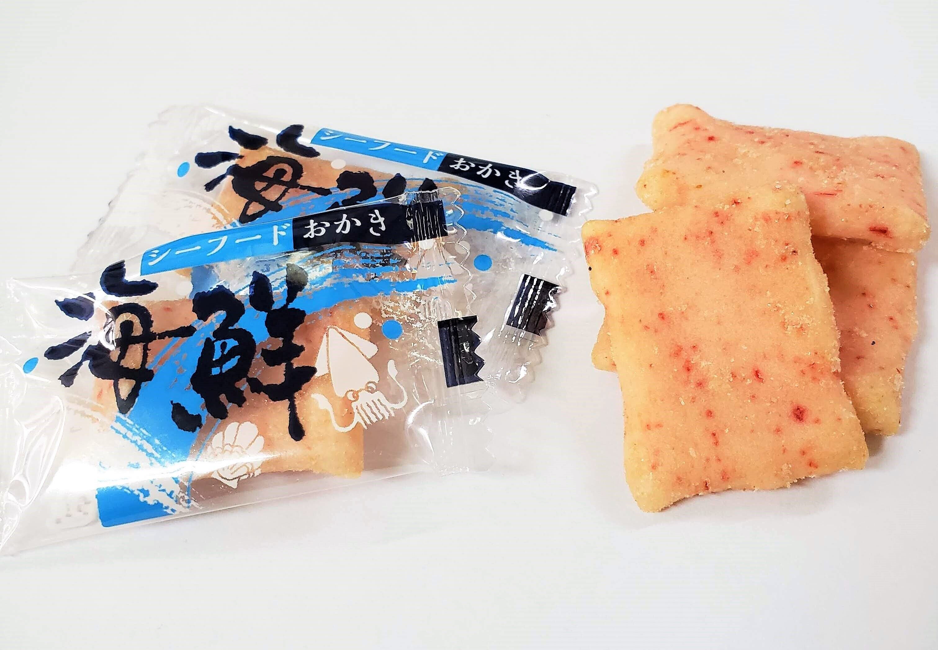 干しえびをつき込んだおかきを海鮮風味(ホタテ、焼イカ、焼えび)に仕上げました。
